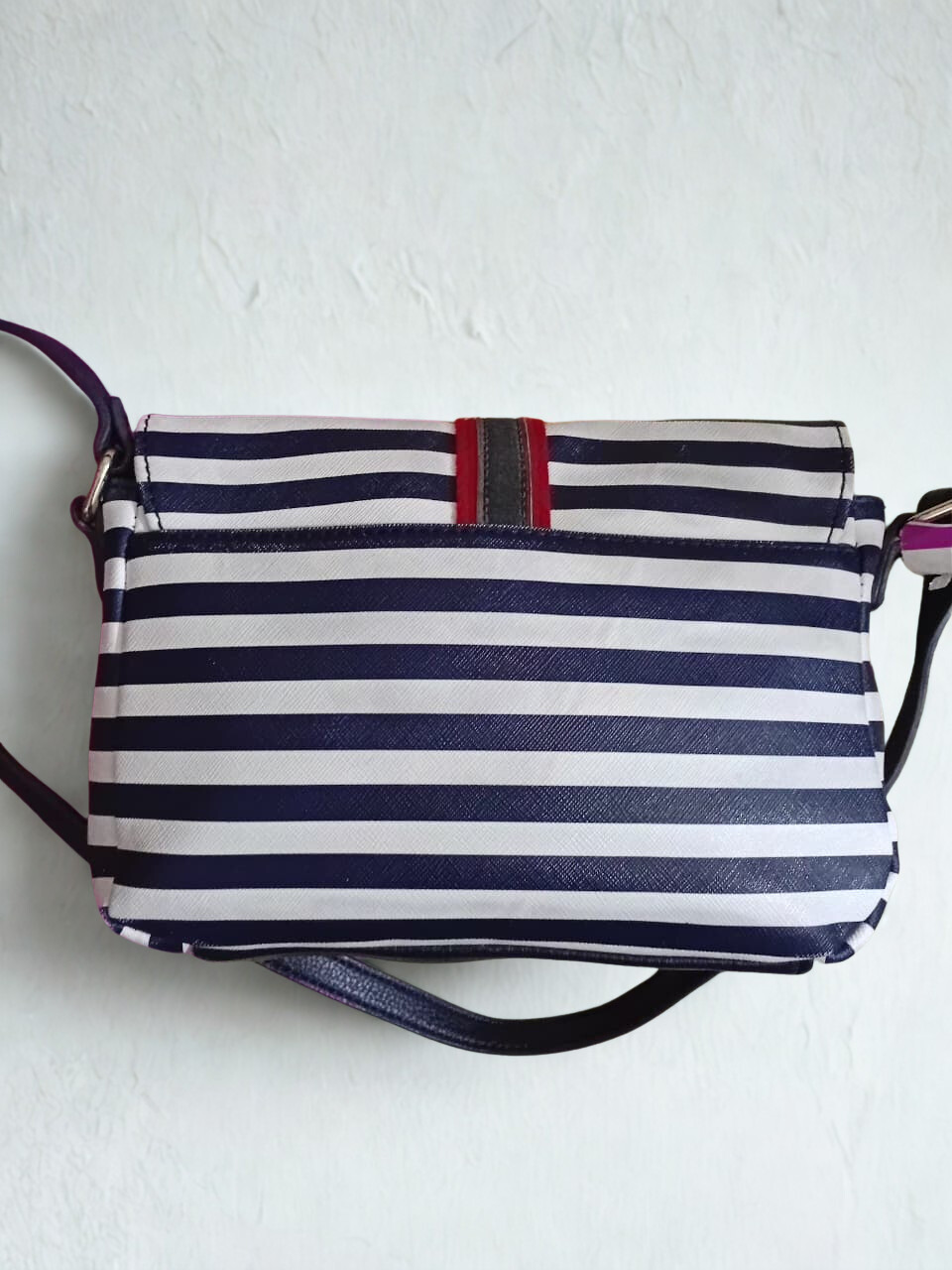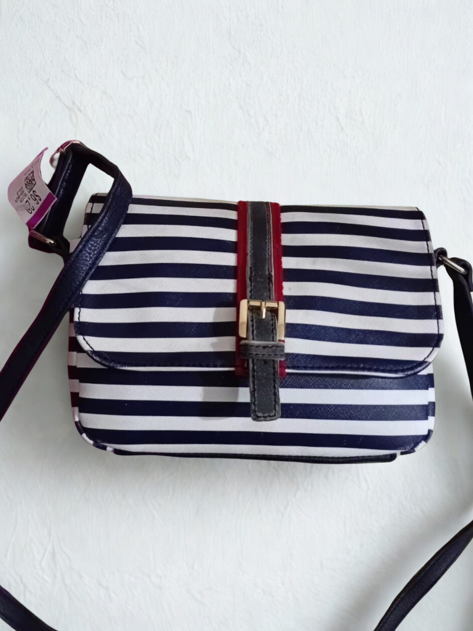 Add a fresh and stylish touch to your look with this original Tommy Hilfiger striped crossbody bag. Featuring the brand’s iconic navy blue, white, and red color palette, this bag offers a perfect blend of casual elegance and everyday practicality.